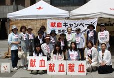 学生が授業時間の合間に私達と共に呼び込みをしてくださり、大勢の学生が献血に協力してくださった。